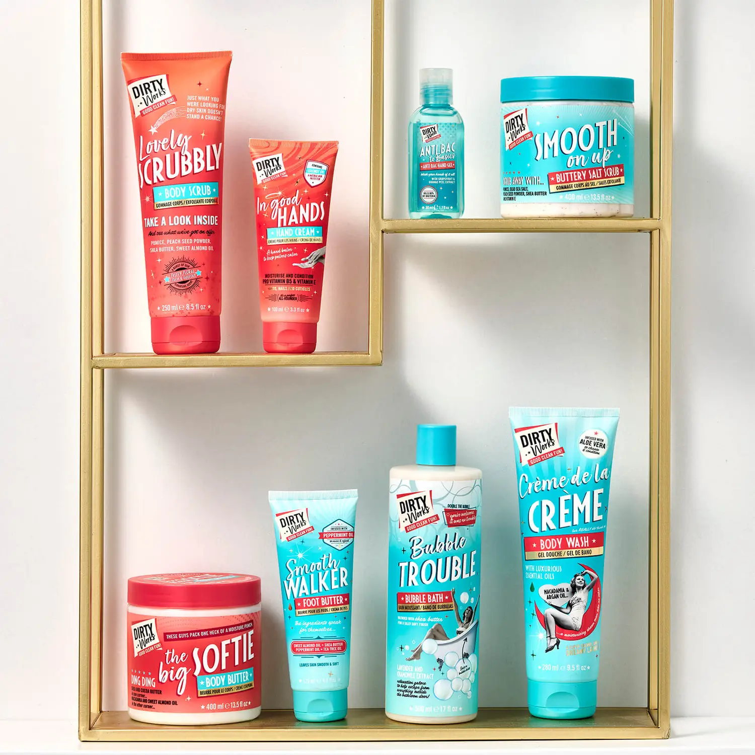 Part of our Signature Bath and Body range, which is all about having some good clean fun! Fragranced with the iconic fresh, fruity and floral Dirty Works Signature Scent for the ultimate bathroom escapism. Luxurious formulas developed with dry skin in mind, the range combines nourishing Butters and Oils for soft, smooth skin.
