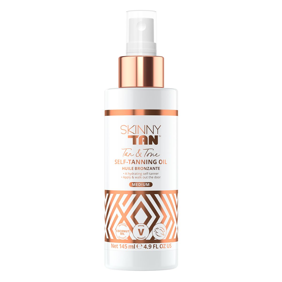 A hydrating medium – dark self-tanning oil with skin smoothing oils and firming guarana that tans, tones and dissimulate cellulite in one. New refreshing ingredients include Castor Oil & Paulininia Cupana Seed Extract to give a lush golden glow with a pump of the nozzle. Natural green based tanning actives leaves skin smooth, moisturised and smelling delicious. Tan & Tone Oil applies smoothly in seconds to give you an instant bronze glow, then develops into a deep natural tan that lasts for days. Made with a natural tanning agent, rich natural skin smoothing oils and firming guarana berries. Skinny Tan & Tone Oil glides on for an easy streak-free tan that also helps visibly reduce cellulite more and more with every application. Fades with your natural skin cell turnover and never ever looks orange. No fishy fake chemical smell. Skinny Tan is scented like a natural tropical breeze! Skinny Tan is not tested on animals, is Paraben free.