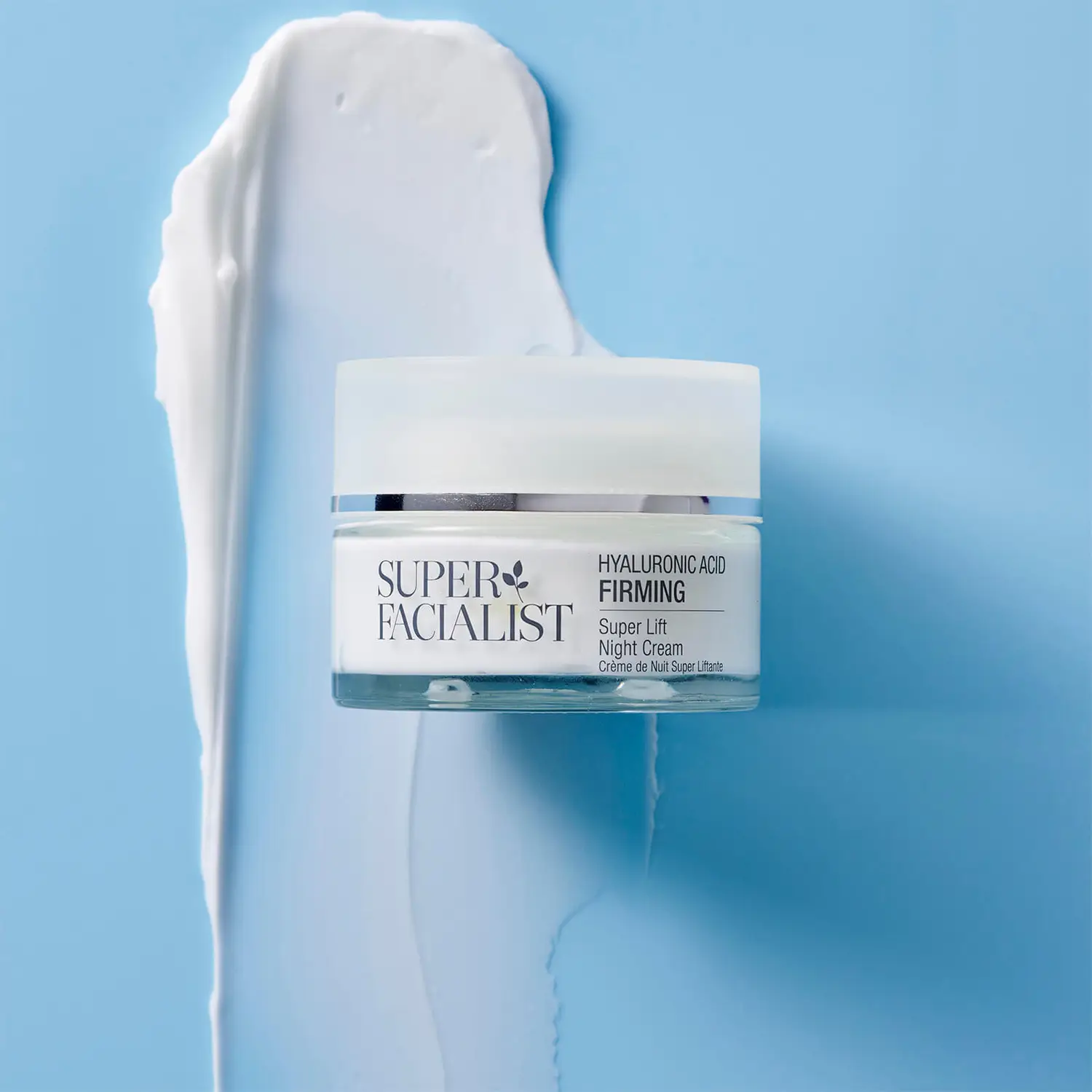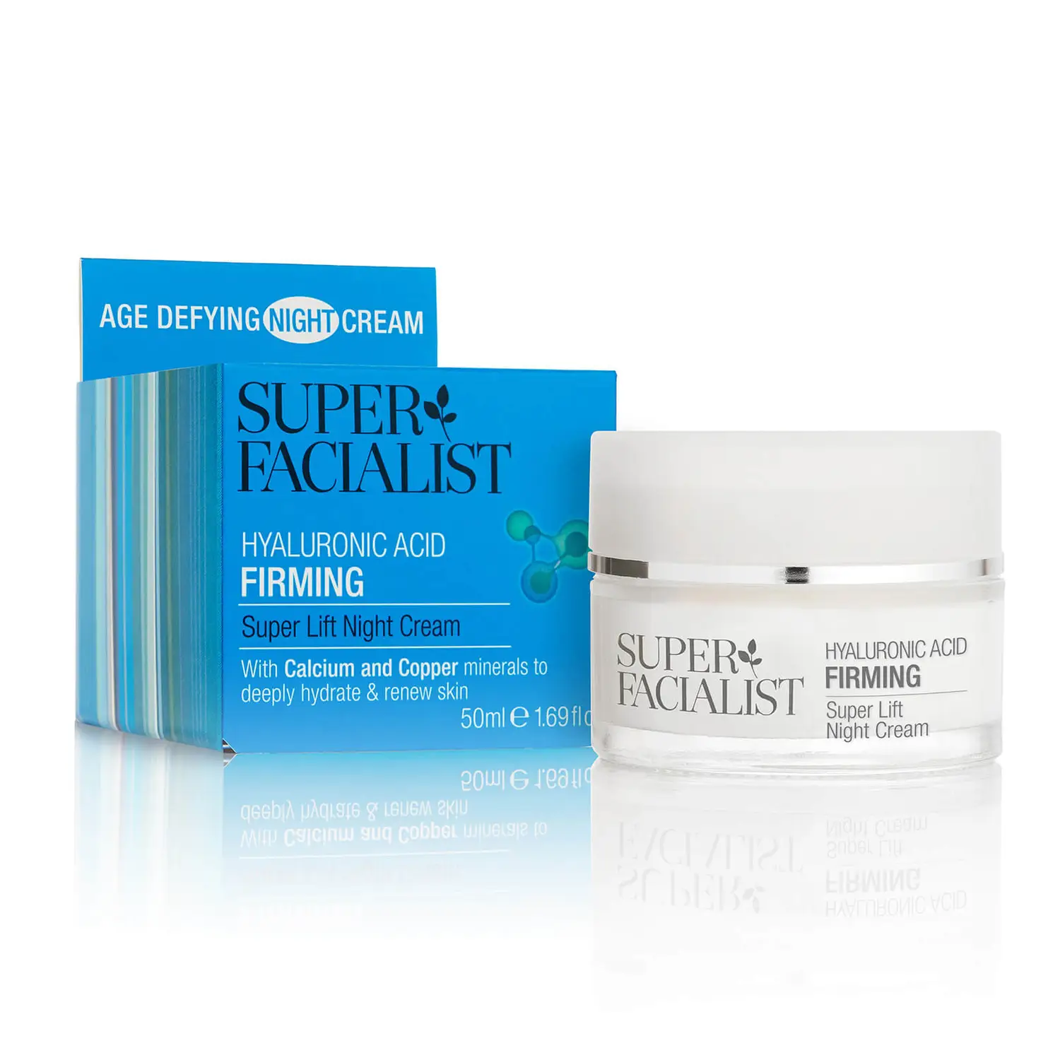 Looking for a night cream to help combat fine lines and firm skin? Then you’re in luck. Our Super Facialist Hyaluronic Acid Firming Super Lift Night Cream has been specially formulated to target the early signs of ageing, including loss of firmness and fine lines.
